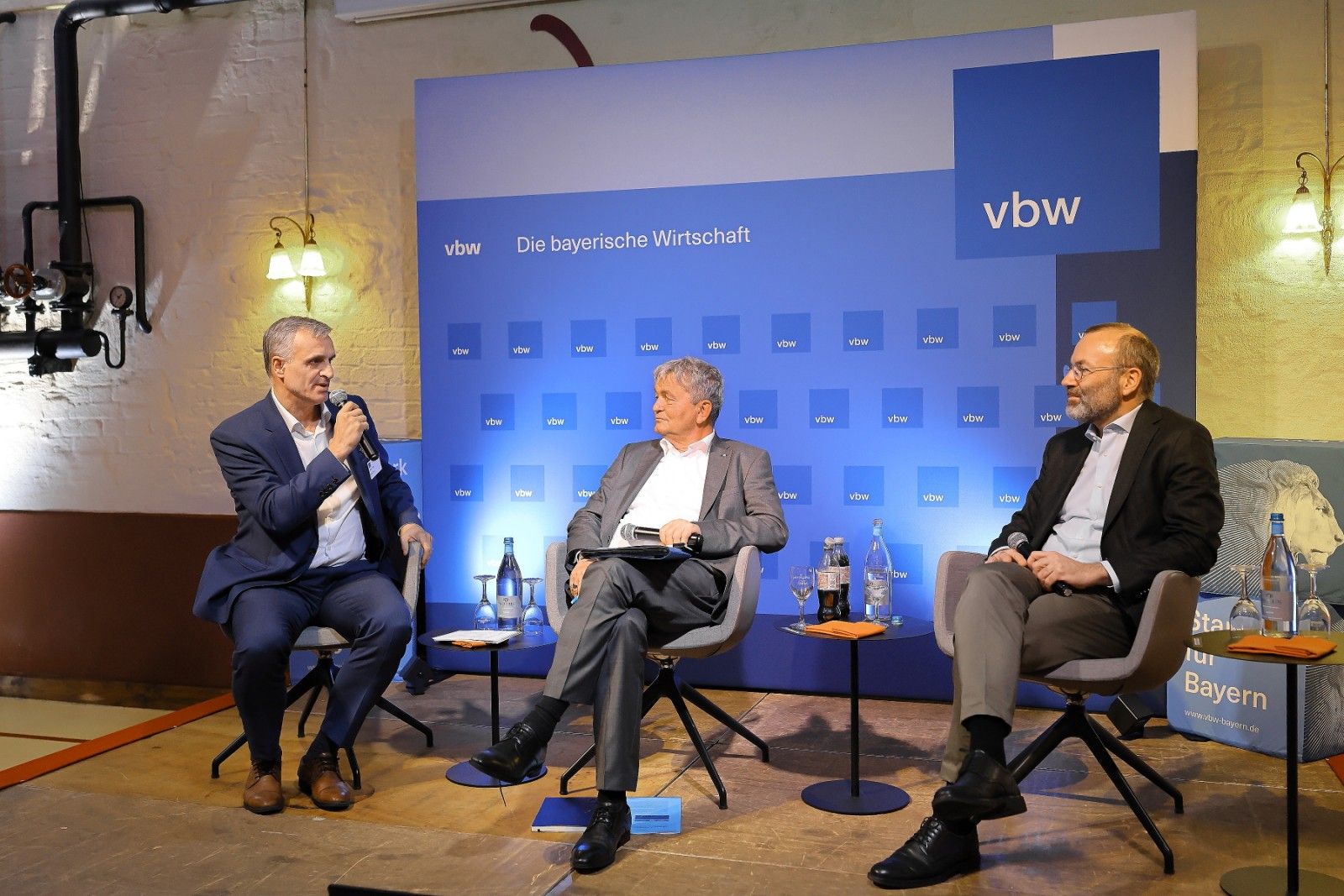 Unter der Moderation von vbw Hauptgeschäftsführer Bertram Brossardt trat Manfred Weber, MdEP, mit Unternehmerinnen und Unternehmern der Region Mittelfranken ins Gespräch. Die Teilnehmenden nutzten die Gelegenheit des "leeren Stuhls" auf dem Podium, um abwechselnd auf der Bühne Platz zu nehmen und ihre Fragen und Anliegen direkt mit dem EVP-Vorsitzenden zu besprechen. Die Bandbreite der Themen reichte vom Industrial Accelerator Act über die Wettbewerbsfähigkeit der EU und Bürokratieabbau bis zur Bedeutung von Freihandelsabkommen für Europa und die bayerische Wirtschaft.